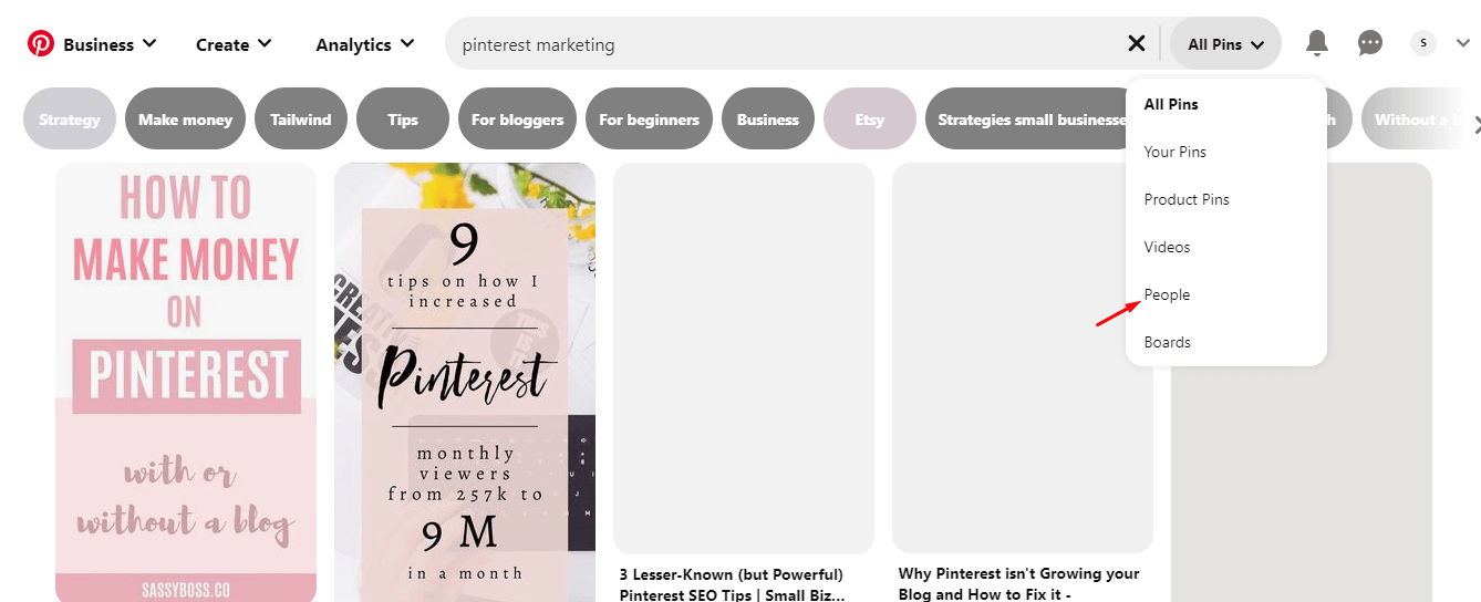 This may not sound like a feature that Pinterest offers, but we would advise following influencers and those with experience in your field on Pinterest to use their way of marketing, image design, and keywords.