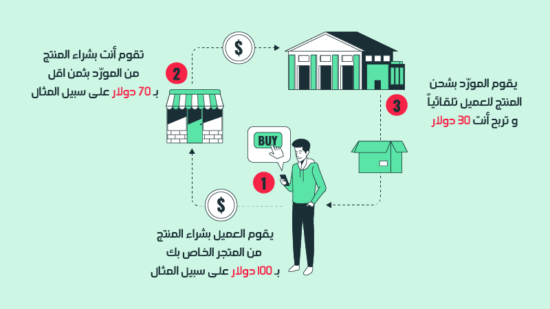 بعملك في الدروب شيبنج فمتجرك الإلكتروني يكون مجرد قناة تصل المستهلك بالتاجر أو المصنع الذي يوفر خدمة الدروب شيبنج.