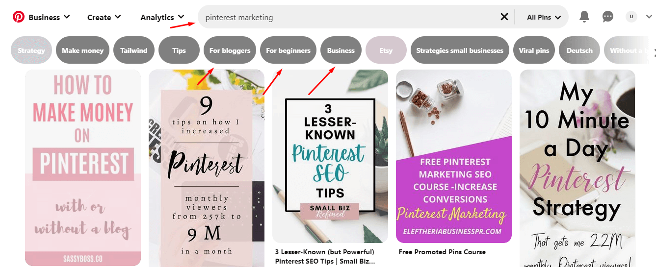 This may not sound like a feature that Pinterest offers, but we would advise following influencers and those with experience in your field on Pinterest to use their way of marketing, image design, and keywords.