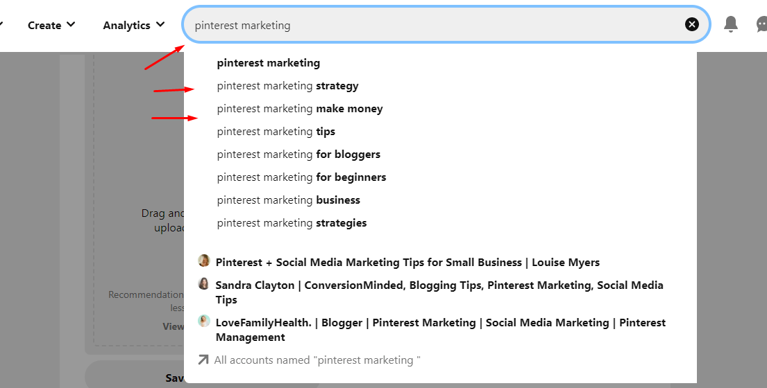 You can rely on some of the tools and properties Pinterest provides to help you find suitable keywords for your photos